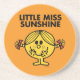 A big smile is your reward from this great print of Little Miss Sunshine. The Roger Hargreaves created character from the Little Miss book and cartoon series is a yellow ball of joy. She can't even cover her smile with both her hands it's so large. If you want to spread a little sunshine to your friends and family get this cool design on one of our custom products. You can personalize a t-shirt, mug, notebook, or other great item.