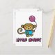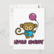 An utterly adorable little cartoon monkey carrying a purple balloon.