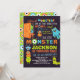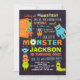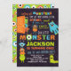 Petit monstre 1er anniversaire invitation pour les garçons - bleu turquoise, orange et vert citron