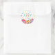 Little Monster first birthday party stickers for monster birthday invite envelope seals with colourful polka dots and cute monsters. Our Little Monster is one!