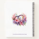 As you begin to plan for your wedding, keep your notes and thoughts in this notebook. For those who don't want a big binder, this will work for you. If you have the big binder, you may not want to carry it all the time, and you can carry this one instead. You are able to choose which lined pages you want to use. In the centre are two wedding rings resting on pink and lavender flowers. The script is in a matching purple colour, and the heart embellishments match the pink flowers. You can personalize it with you and your fiancé's names.