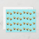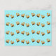 Little orange trains pattern on blue postcard