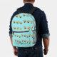 Little orange trains pattern on blue printed backpack
