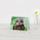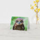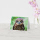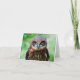 Photograph of a little brown owl. The text on the card can be personalised or deleted, as required.