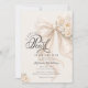 Celebrate the upcoming arrival of your little one with this timeless and luxurious baby shower invitation. Featuring a soft ivory palette, an oversized pearl-adorned bow, delicate florals this design exudes classic elegance and refined charm. The graceful typography and neutral tones make this invitation perfect for a baby girl baby shower. Ideal for formal celebrations, elegant venues, and parents who love a timeless, polished style. Matching items are available.