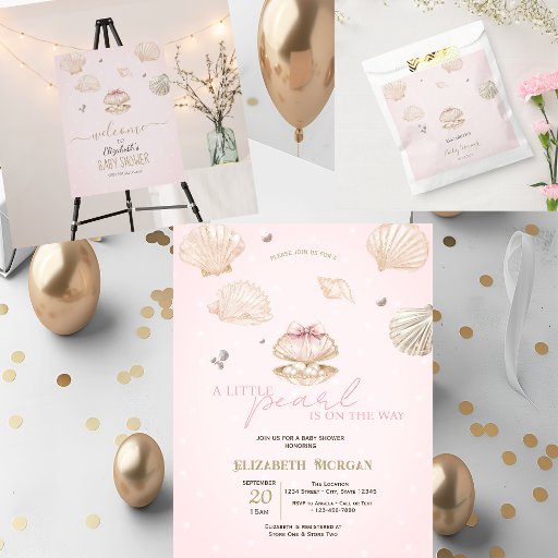 Little Pearl Seashells Dots Baby Shower Invitation