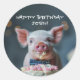 Cute little piglet with a bow tie munching on a birthday cake, birthday theme design.