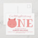 Our little piglet is turning one first baby birthday invitation postcard. This invitation is pink and white with the word "One" in large letters with a cute pig face illustration as the first letter of the word. Simply, customize this invitation, add it to your cart, and happy birthday to your wonderful baby!