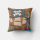 Un garçon afro-américain, pirate, porte un casquette avec un perroquet assis sur le bord. Un bateau de pirate avec canon et drapeau crâne et os croisés sur un coussin votre petit pirate ne manquera pas d'aimer !