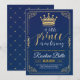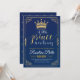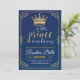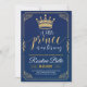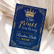 Celebrate your new arrival with this elegant "Little Prince" baby shower invitation featuring a regal gold crown and a sophisticated navy blue backdrop. Perfectly designed for a royal-themed boy's celebration, this card combines classic charm with modern style to impress your guests. Easily customize the text to include all your special event details for a truly personalized touch. Ensure your prince's big debut starts with the royal treatment it deserves!