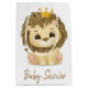 You will love this cute Baby lion with a crown on top of his head with matching yellow golden watercolor stripes.