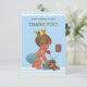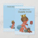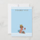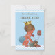 Elegant custom personalized vintage prince baby shower thank you card template for baby boys with a beautiful vintage illustration of a cute and adorable baby boy with stylish blue diaper and gold crown. He is ringing you on an old red retro telephone to say thank you. He is holding a little blue suitcase and his quirky teddy bear is leaning against it - he's all packed up and ready for his arrival! The background is a pretty blue with a classy, modern, contemporary blue chevrons border with grey text. Chic, trendy, fun, fashionable, funny, amusing, humourous, whimsical, affordable personalized / personalised custom baby boy shower thank yous templates. Decorated on both sides. The back / reverse side has the same design. Double sided printing / front and back. You can hand write your message on the back. If you need any assistance customizing your product please contact me through my store and I will be happy to help.
