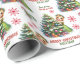 The repeated pattern on this Christmas wrapping paper includes an image of a beautiful little princess peeking around a decorated Holiday tree. Red and green text says MERRY CHRISTMAS", with your child's name and your signature below. Other images included in the pattern include red decorative snowflakes, and candy canes tied with a bow.