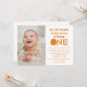 Modern photo little pumpkin 1st birthday invitation. Background is white but can be customized to a colour of your choosing. Template photo credit via Pixabay licensed under CC0 and must be replaced with your own photo