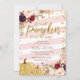 A little Pumpkin Baby Shower Marsala, Pink, & Gold Glitter Card. It is perfect for a fall, autumn, winter girl baby shower invitation.
