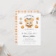 Celebrate the upcoming arrival of your little one with our enchanting Halloween Baby Shower Invitation, featuring an adorable pumpkin jack o'lantern theme. The charming phrase "Our little boo is almost due" sets a playful tone for your festive gathering, making it the perfect way to invite friends and family to join in the celebration. This invitation combines seasonal spirit with a heartwarming message, ensuring your baby shower is both memorable and delightful. Make your event truly special and let the countdown to your little pumpkin's arrival begin!