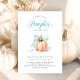 Celebrate the upcoming arrival of your bundle of joy with this soft and sweet fall-themed baby shower invitation. Featuring a pastel pumpkin wrapped in a baby blue bow, this design captures the cozy charm of autumn while keeping things elegant and modern. Perfect for a baby boy shower or any fall celebration, it sets the tone for a heartwarming, seasonal event. A keepsake-worthy design your guests will adore!