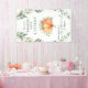 This baby shower backdrop banner features a watercolor pumpkin and fall greenery gold foliage wreath.