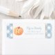 Our little pumpkin pastel blue plaid first birthday party return address labels.