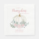 Little Pumpkin girl baby shower napkin. Pretty white pumpkin with delicate pink floral, featuring pink script that reads, Little Pumpkin Is On The Way," and personalized name and date below. Perfect for an autumn baby shower.