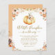 a little pumpkin is on the way. Gold and blush autumn watercolor flowers. The text and colours can be personalized.