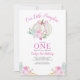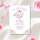Our Little Pumpkin Turning One First Birthday party invitation with beautiful fall pastel watercolor florals and an white pumpkin with a pretty, coquette pink bow. Perfect for Girl's 1st birthday this autumn.