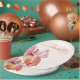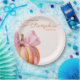 Celebrate in style with this adorable baby shower paper plate, featuring a watercolor pumpkin adorned with a delicate pink bow. Perfect for an autumn baby shower, these chic disposable plates add a festive touch to your table decor. Personalize with your own text to make the celebration uniquely yours.