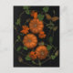little pumpkins on black background with orange flowers, butterfly and green viney leaves