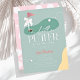 This retro modern "a little putter on the way" girl's baby shower invitation features a pink flag with a white bow and golf balls with a fairway and bunker in a golf course. The reverse side features a light pink background with a golf ball and tee pattern. Personalize it for your needs. You can find matching products at my store.