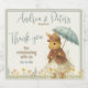 Rustic-style baby shower collection, decorated with soft colours and a vintage watercolor image of a cute little bunny with a parasol, in a style similar to Beatrix Potter's Peter Rabbit.