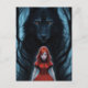 Little Red in the forest and a black wolf in the forest dark fantasy AI generated art