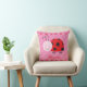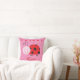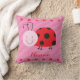 Personalized pillow featuring a red ladybug with beautiful red flowers and pink stripes background. Cute and fun design for special for girls. Customizable name gift.