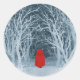 Little Red Riding Hood on a snowy winter walk through the woods. Can You see the Big Bad Wolf howling in the distance? A grungy version of a negative watercolor painting.