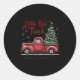Little Red Truck Hauling A Christmas Tree Family M Classic Round Sticker