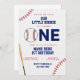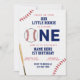 This design hits a home run with a rookie baseball theme! The background's got that classic baseball texture, paired with bold red and navy blue fonts—just right for celebrating your little slugger first birthday. Customize with your event details to hit it out of the park! Available as printable invites and instant downloads. Batter up!