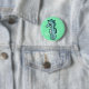 A button badge featuring an adorable digital illustration of a cute little blue cartoon seahorse on a sea green bubble covered background.