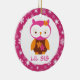 If you have a new baby on the way or at your house, this darling Lil Sis pink retro owl is a special keepsake for her. Pink and white snowflake border on this one sided version of our ornament gift with a darling pink, brown and orange retro look hoot owl. We have a matching Big Sis ornament in our store as well.