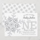 Little Snowflake Silver Glitter 1st Birthday Invitation
