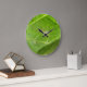 This awesome clock features a detailed photograph of a little garden spider sitting on a broccoli leaf. The tiny creature is almost transparent. The photograph is so detailed you can even see a couple of strands of the spiders’ web.