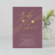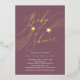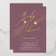 Gold Foil baby shower invitation featuring a modern script set on a plum background.