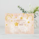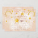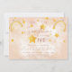 Bohemian rainbow first birthday invitation in muted pink, magic dust and gold shiny stars. Click the "customize further" button if you wish to re-arrange and format the style and placement of the text.