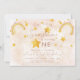Bohemian rainbow first birthday invitation in muted pink, magic dust and gold shiny stars. Click the "customize further" button if you wish to re-arrange and format the style and placement of the text.