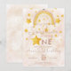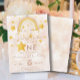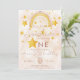 Bohemian rainbow first birthday invitation in muted pink, magic dust and gold shiny stars. Click the "customize further" button if you wish to re-arrange and format the style and placement of the text.
