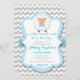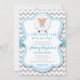 A little lamb is on his way and you need to invite your family and friends to celebrate a special day! This invitation features a cute boy lamb with blue accents and a chevron background.