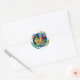 This adorable green T-rex sticker with balloons and lava blast is a great addition to party favours and dino-themed goodies.