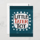A cute typographic food design that says "Little Tater Tot". It's black and red text on a white rectangle with funky, playful white dots surrounding it, all on a teal background.