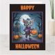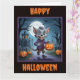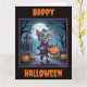 A cute little werewolf is ready for Halloween in this fun and spooky Halloween card. Add your own personalized text.