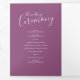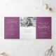 Simple script text and little white heart wedding program with your own two photos, love story, the order of ceremony, wedding party and thank you sections. Personalize this mulberry dark purple pink plum coloured wedding trifold program with your own wedding ceremony names and details. Other colours and matching wedding items available. © Design by Sarah Trett for www.mylittleedenweddings.com on Zazzle.