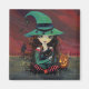 Little Witch and Black Cat Halloween Magnet