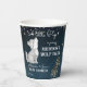 Little wolf themed baby shower tableware personalized paper cups, cute wolf pup dark starry night background.